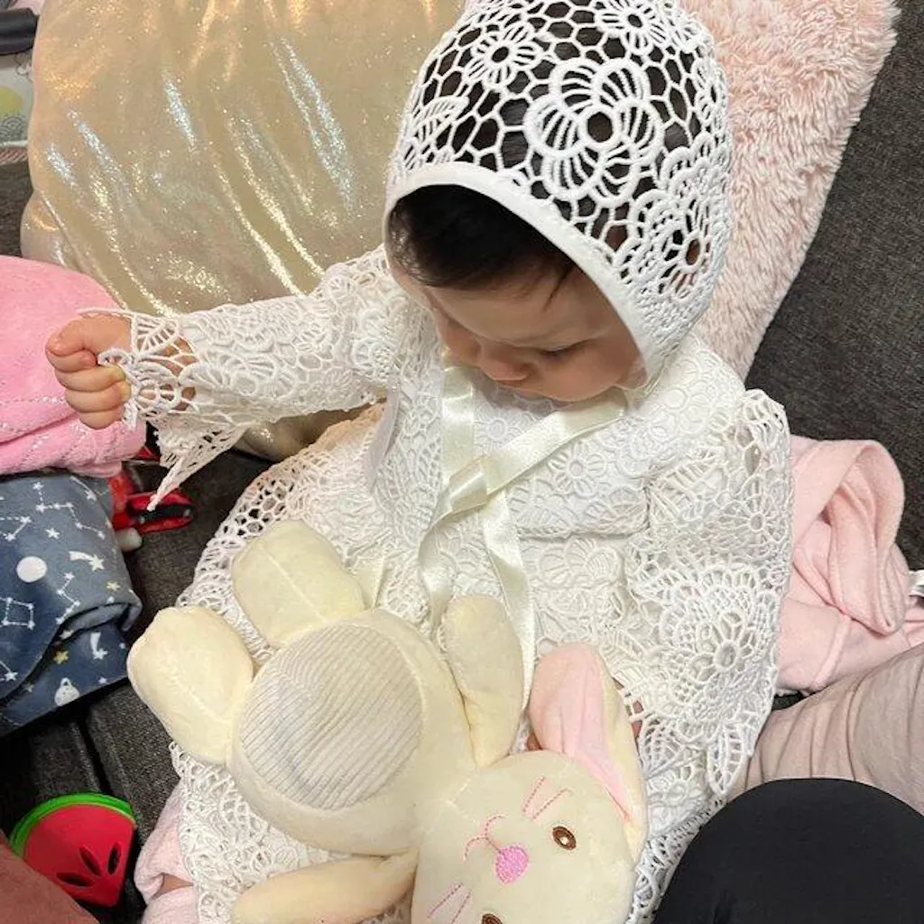 Created to complement ceremonial garments from the Izolda Collection, the Amelia Lace Baptism Bonnet is intended not only to complete an outfit, but to be kept as a keepsake—holding remembrance of a child’s first sacred moments.